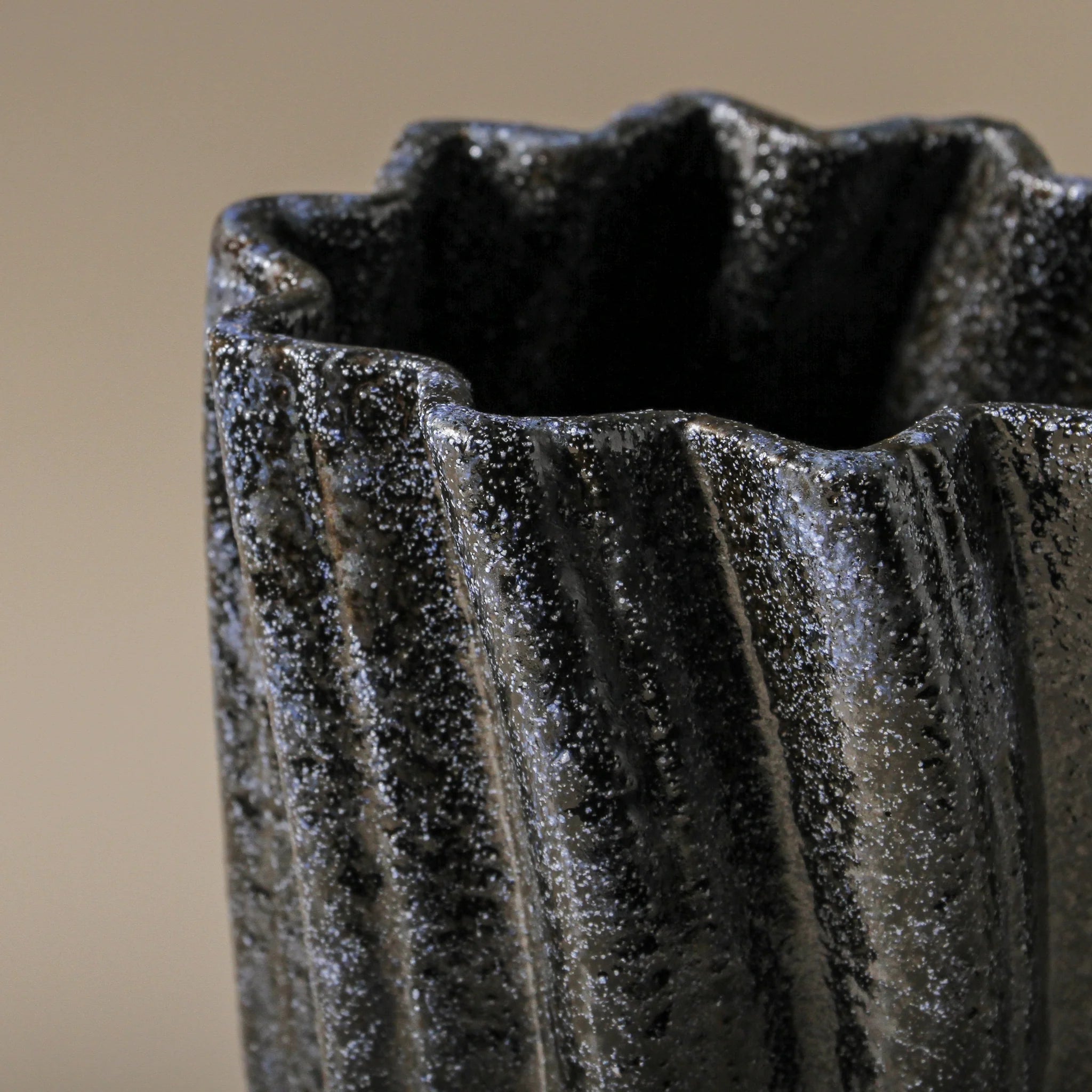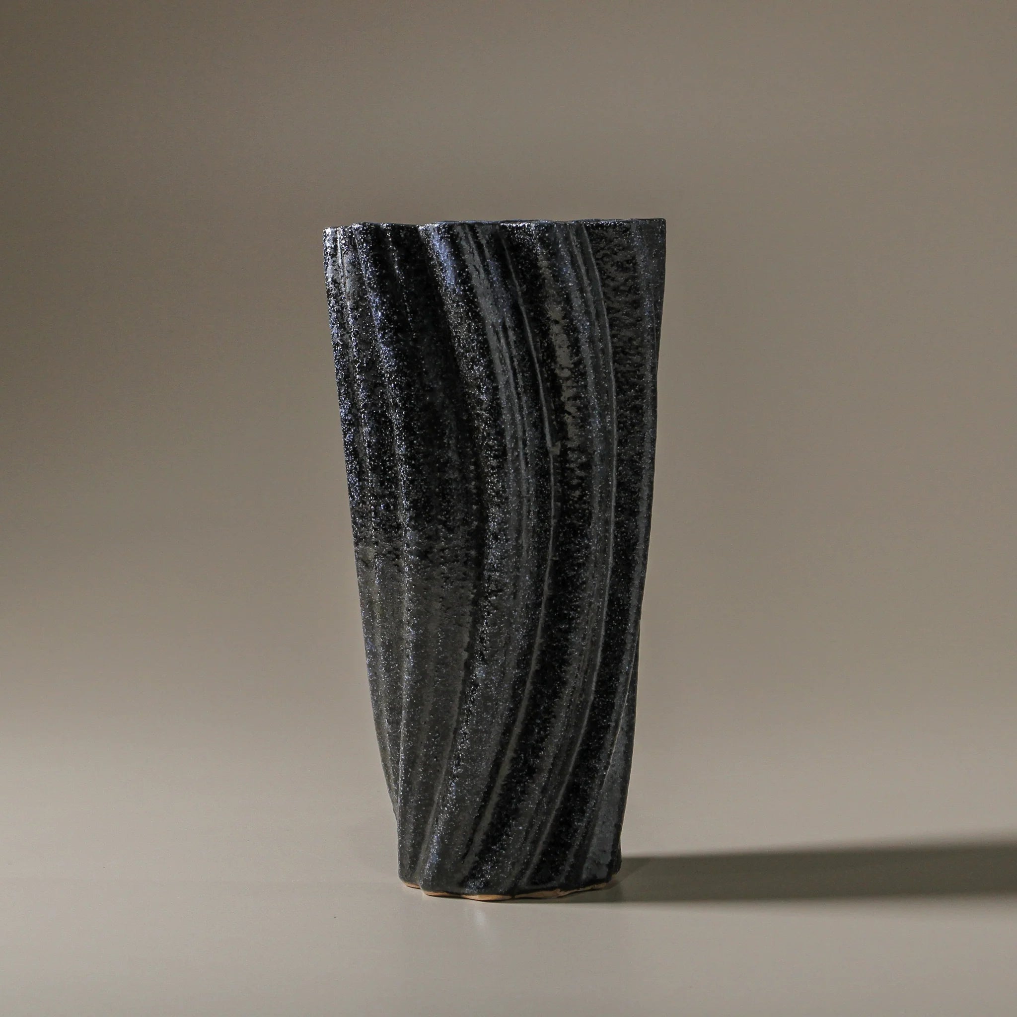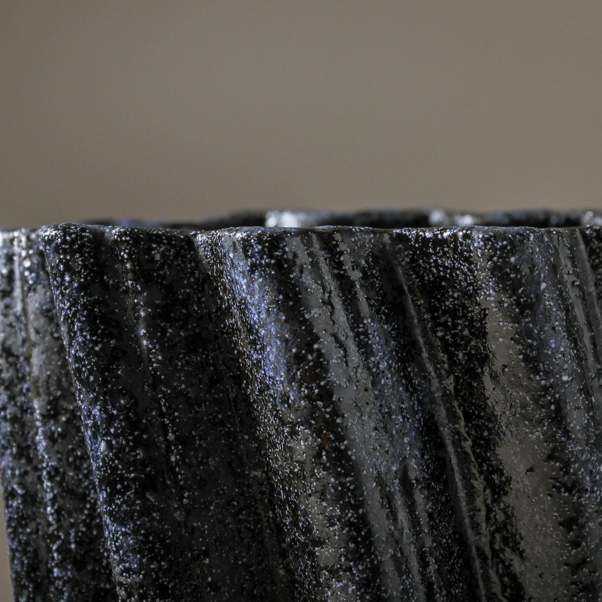 The Tidal Vase works beautifully as a statement piece in any room, whether displayed alone or styled with minimal florals or branches to accentuate its sculptural form. Its depth of texture and colour add both contrast and balance to any interior, creating a focal point that pairs seamlessly with modern or natural aesthetics.