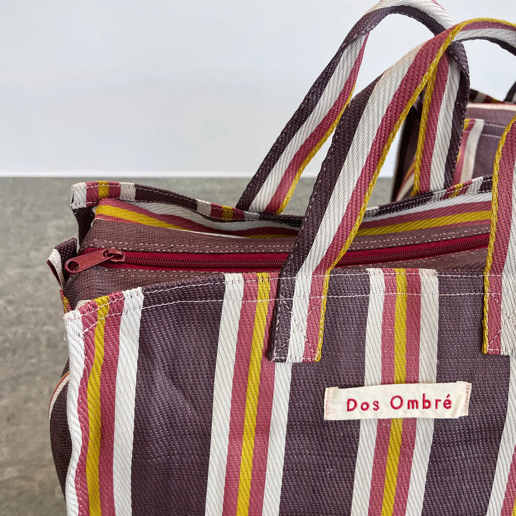 Durable and eco-friendly, our everyday Bengali Bags are made from 100% Recycled Nylon in assorted coloured stripes, perfect for everyday use and features and zipper enclosure. Reusable and a super strong 'carry all' perfect for shopping, beach and everyday living.