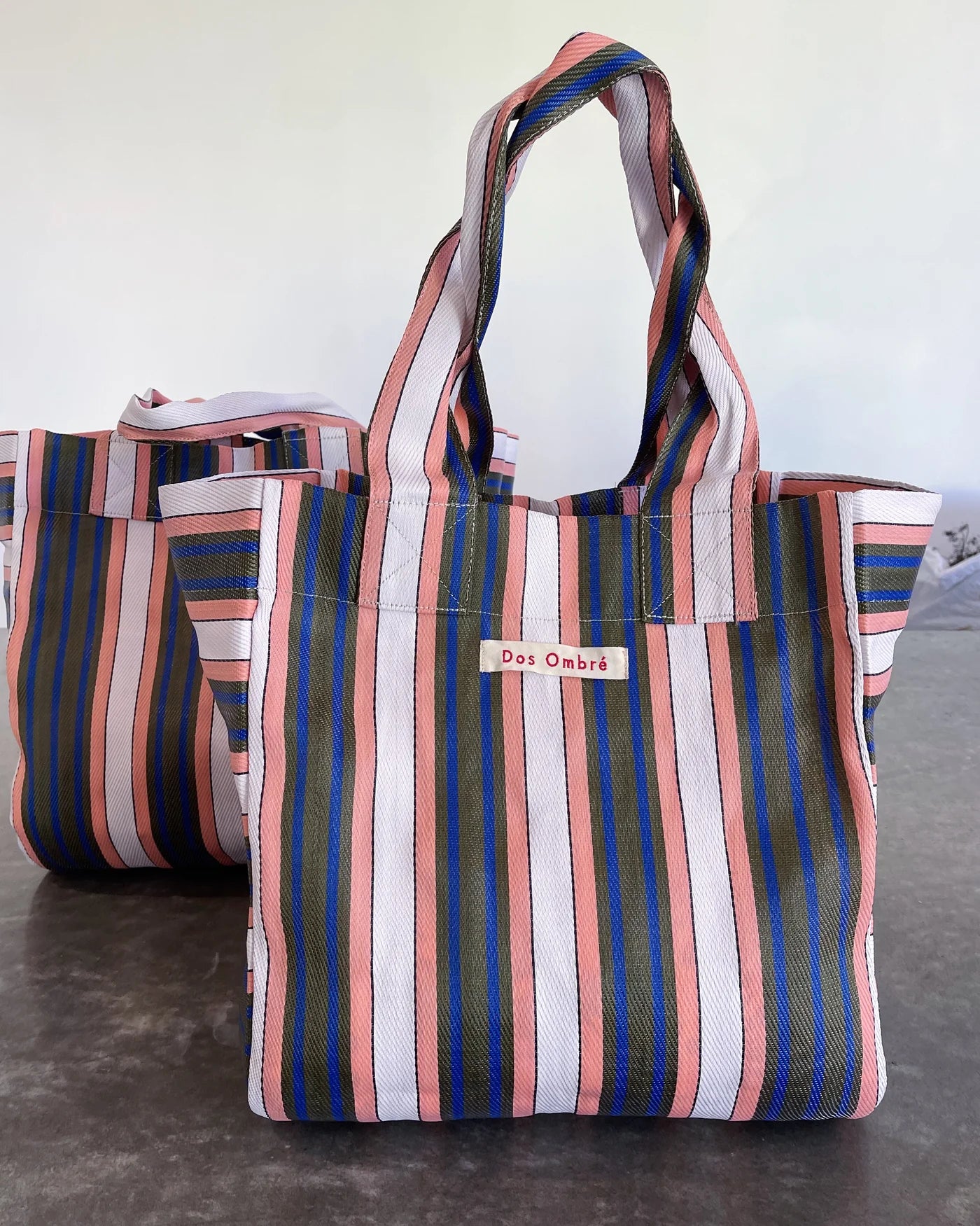Big Bengali Bag - Khaki Pink Blue Stripe
