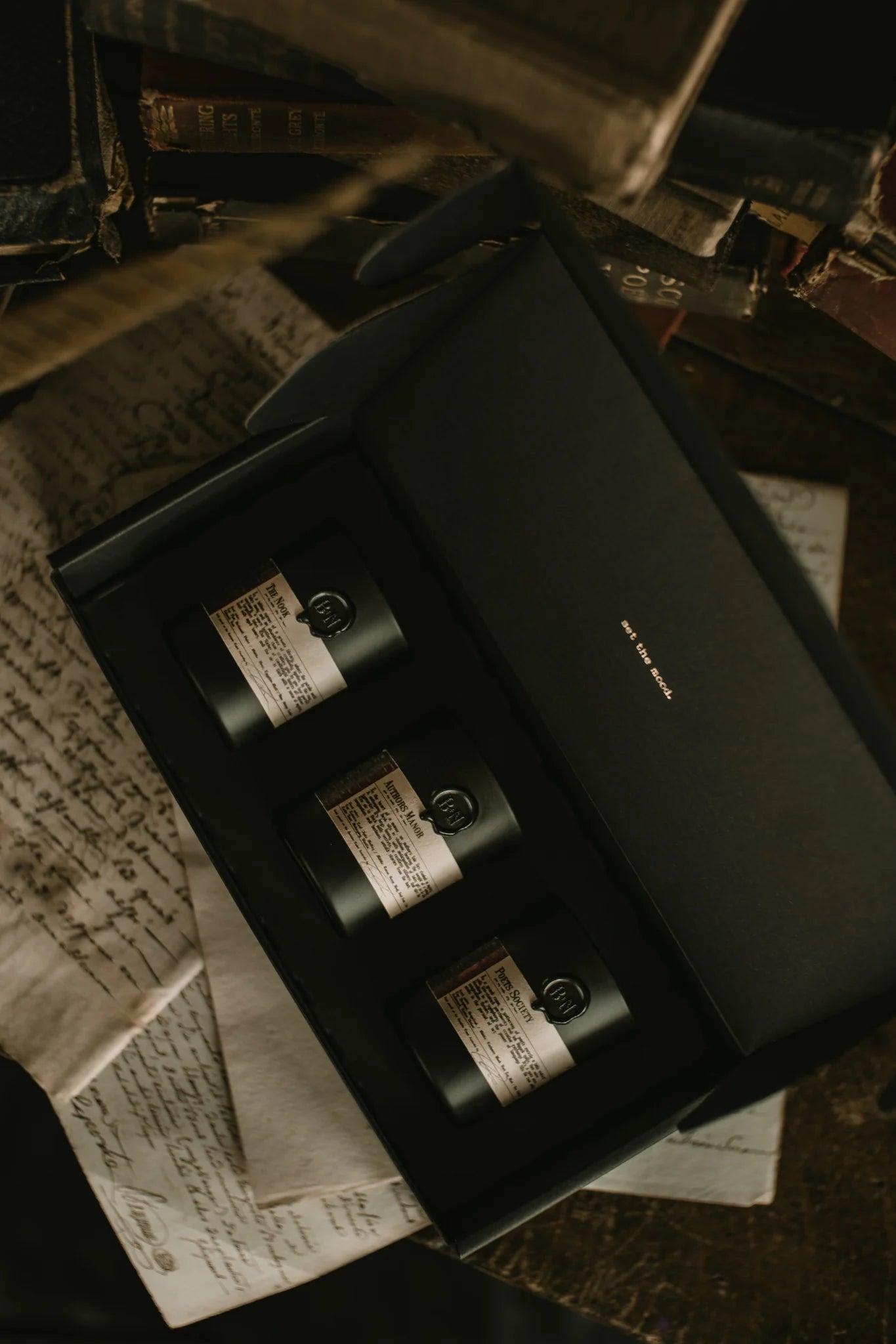 Can't decide which scent to choose? Why not indulge in all three! Whether you seek the invigorating brightness of citrus, the warm embrace of spicy undertones, or the nostalgic charm of vintage leather, this collection is designed to inspire your creative headspace. Light them individually or together, and let the enchanting aromas awaken the writer within.