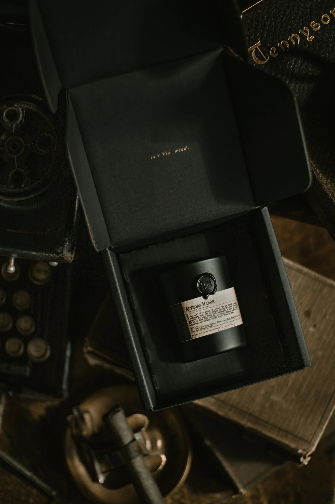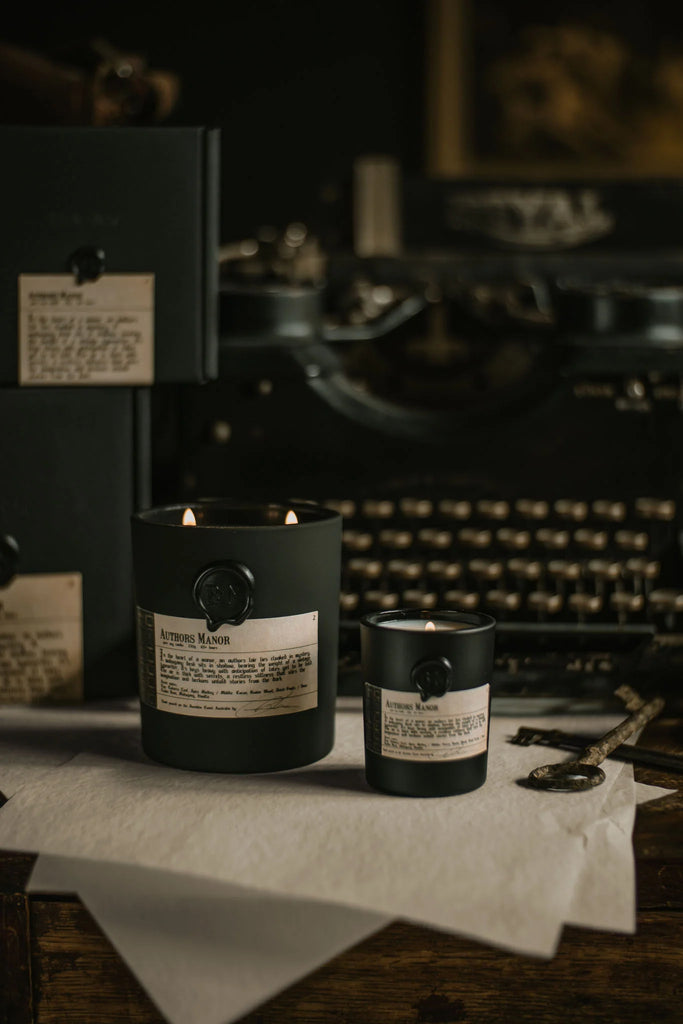 In the heart of a manor, an author's lair lies cloaked in mystery. A mahogany desk sits in shadow, bearing the weight of a vintage typewriter, it’s keys heavy with anticipation of tales yet to be told. The air is thick with secrets, a restless stillness that stirs the imagination and beckons untold stories from the dark.