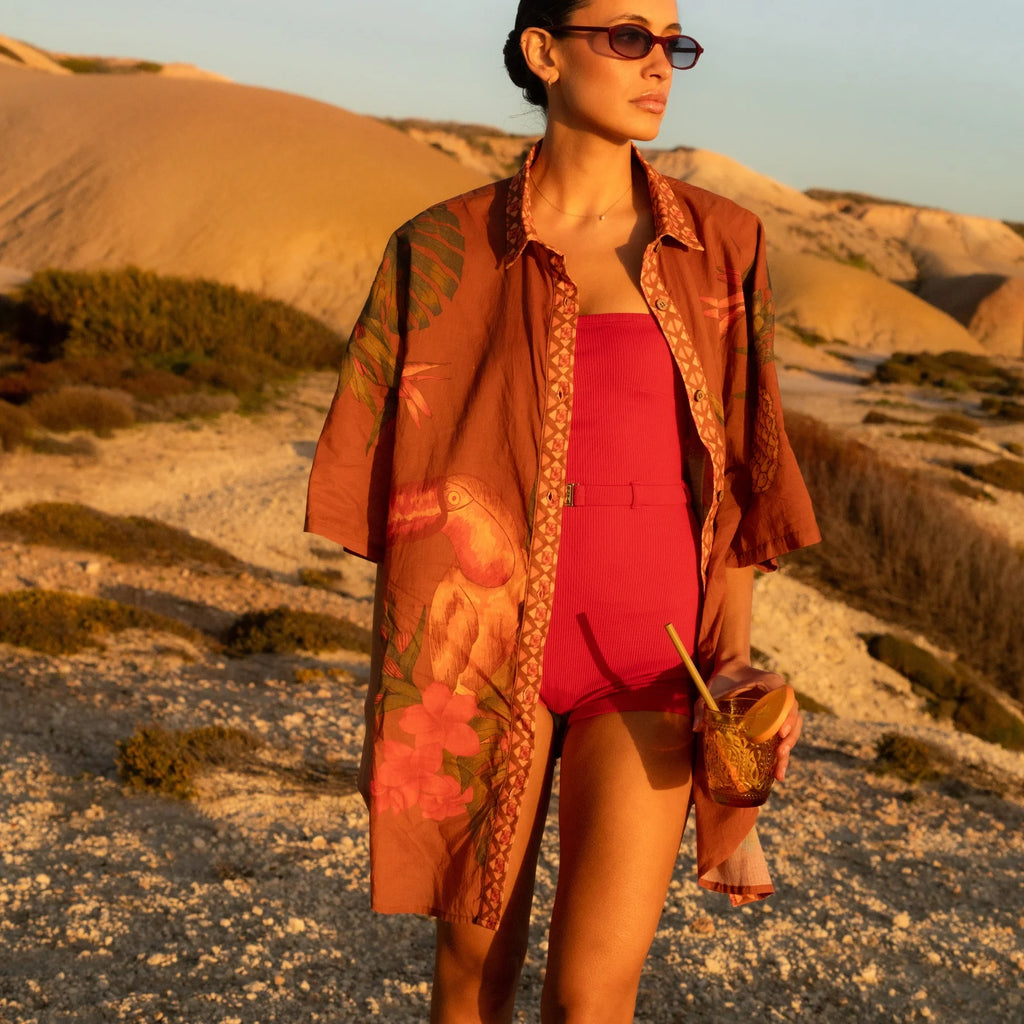 Cuban Tropical Shirt - Coffee