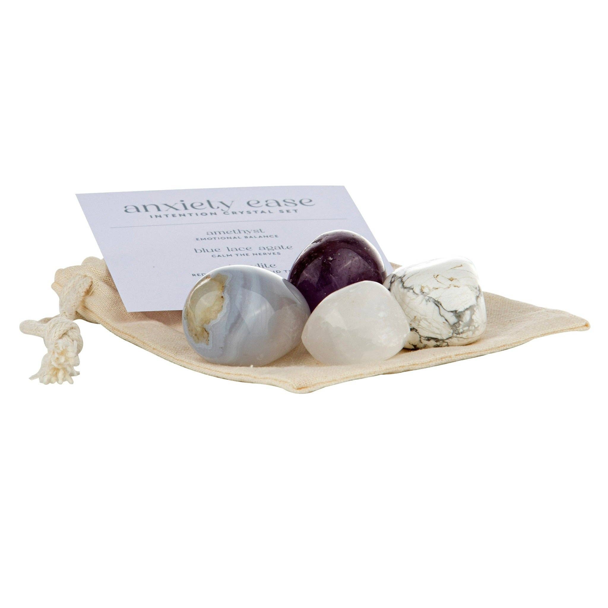 Anxiety Ease Intention Crystal Set 4 Tumbled Crystals in a Calico Bag with an Information Insert