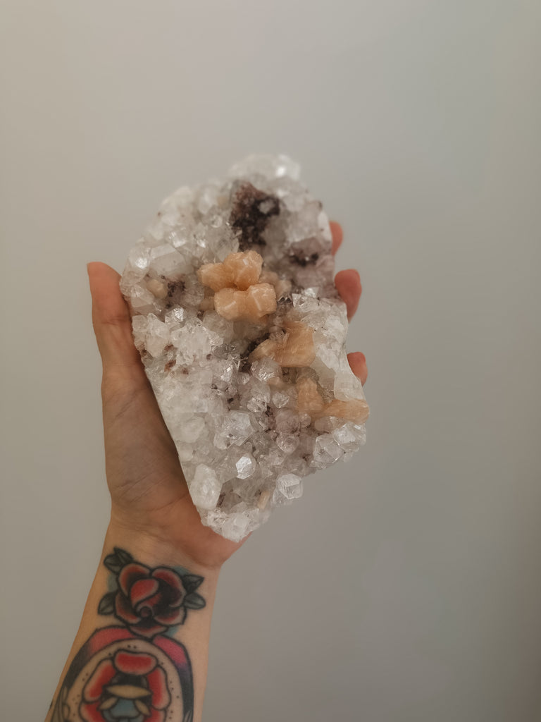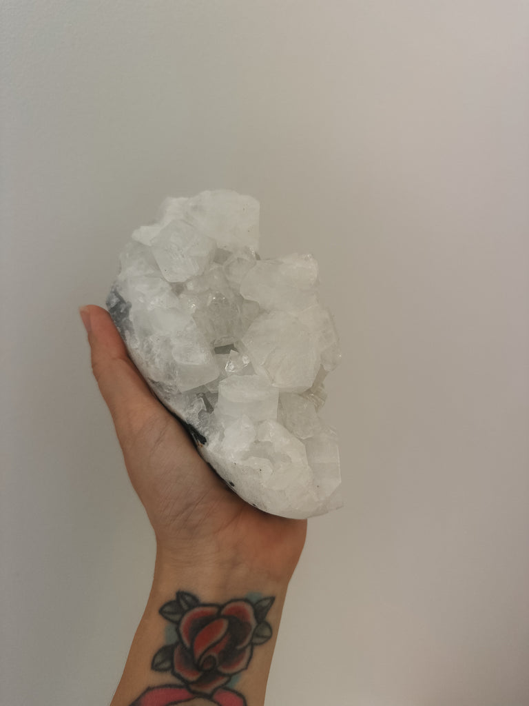 Apophyllite is often associated with uplifting the spirit, clearing mental fog, and opening the heart to intuition and higher guidance. Its soothing frequency helps to create an atmosphere of peace and balance, making it a beautiful companion for meditation or mindful rituals.