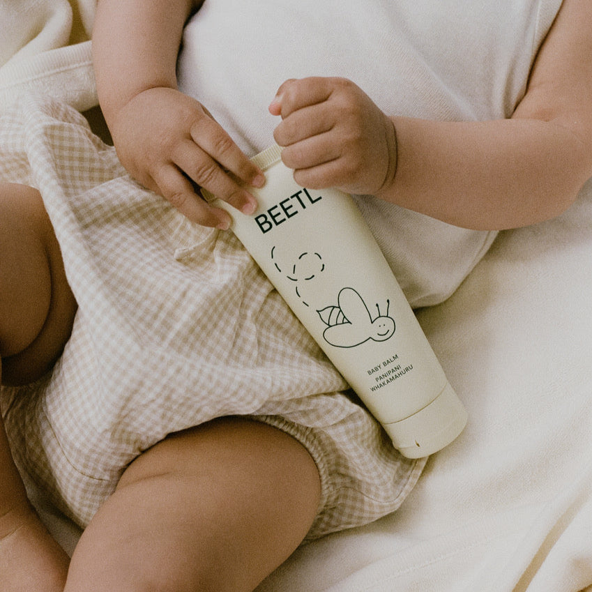 A natural barrier cream that cares and protects the most sensitive area using Calendula and Chamomile. BEETL Baby balm soothes irritated skin, reduces redness, and can be used daily as a protection barrier to the nappy area.
