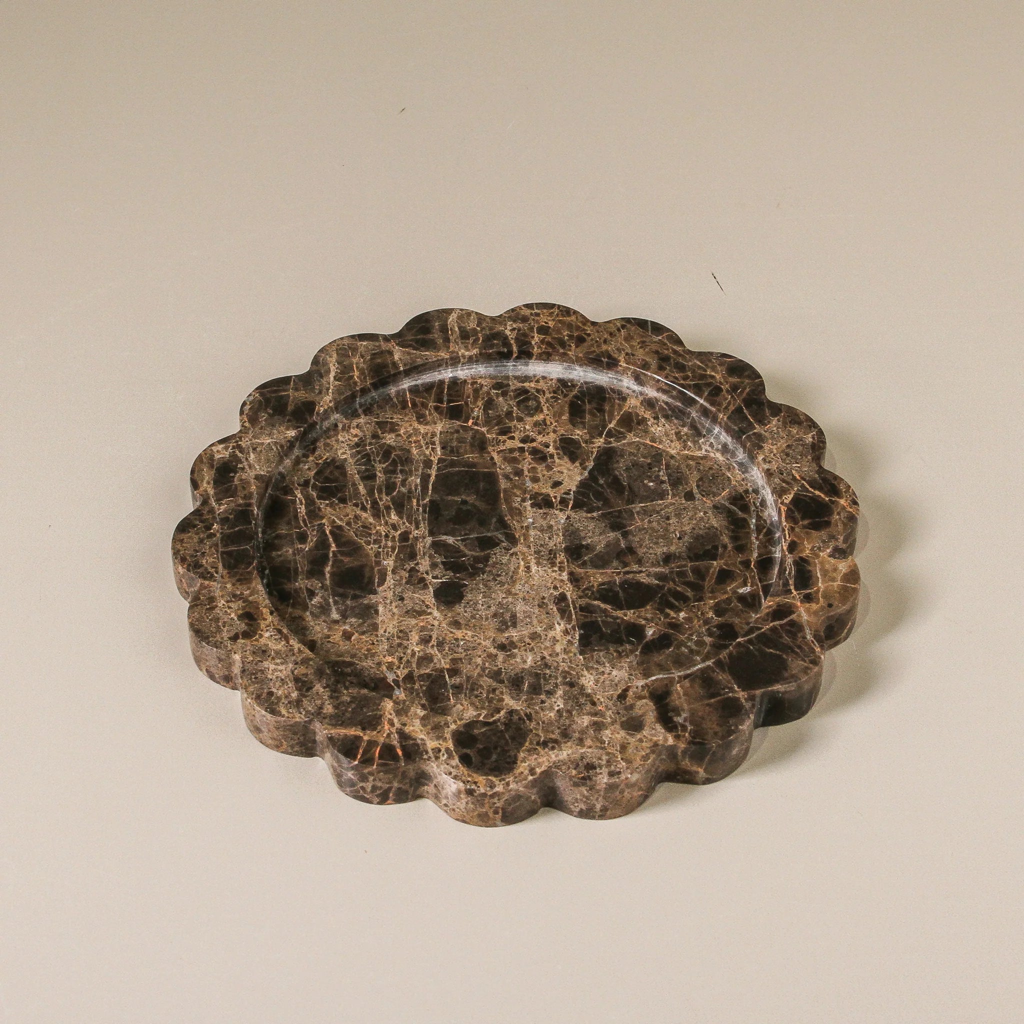 Curved, tactile, and crafted from natural marble, the Calile Tray adds colour detail to any vignette. Its soft scalloped edges echo the calming forms of the Tender Forms collection, offering both rhythm and beauty. Available in two stone finishes—Pink Lagoon and Brown Emperador—it’s ideal for styling a console, dining table, or vanity. Use it to display collected items, candles, or jewellery and bring a gentle, grounded moment to everyday rituals.