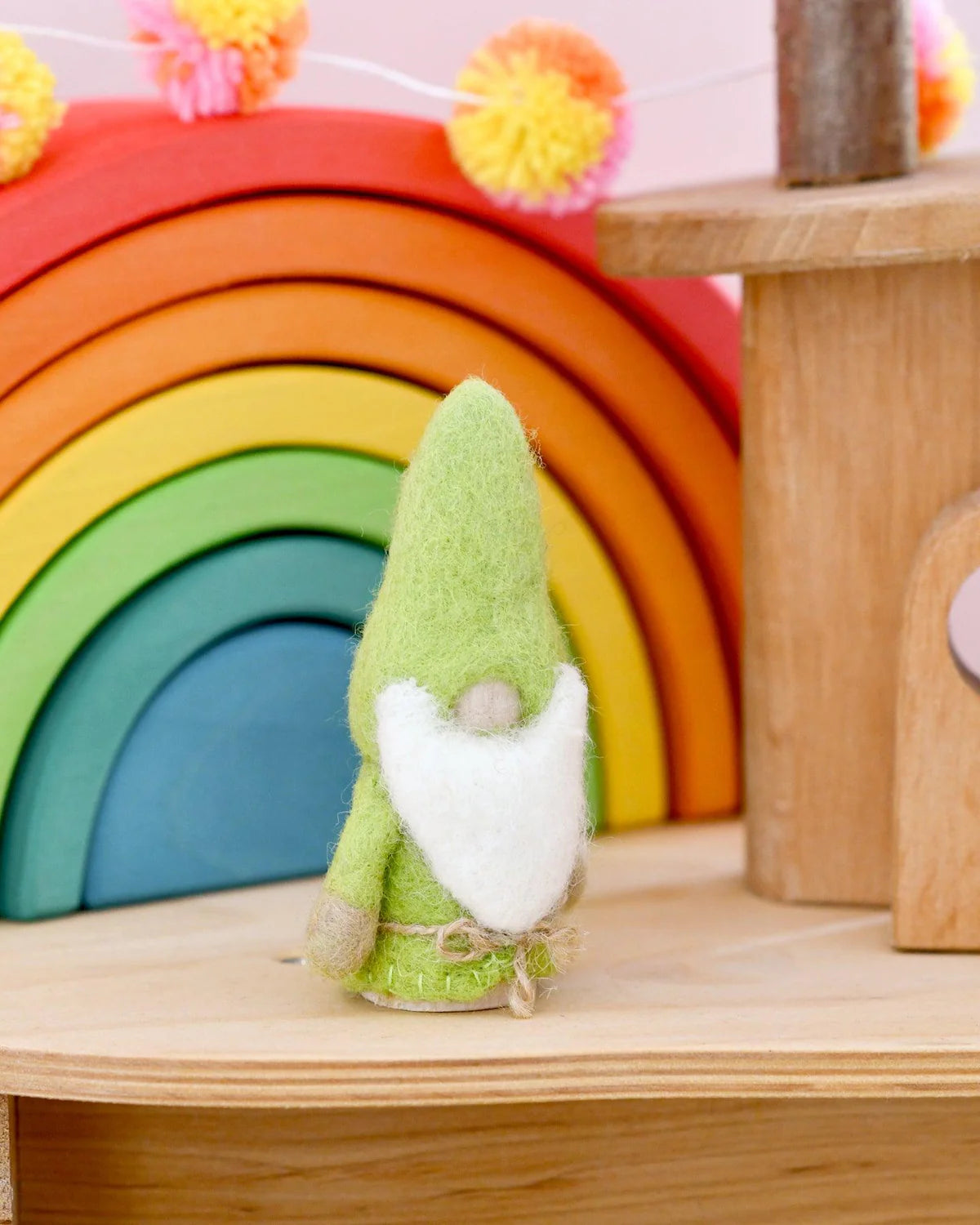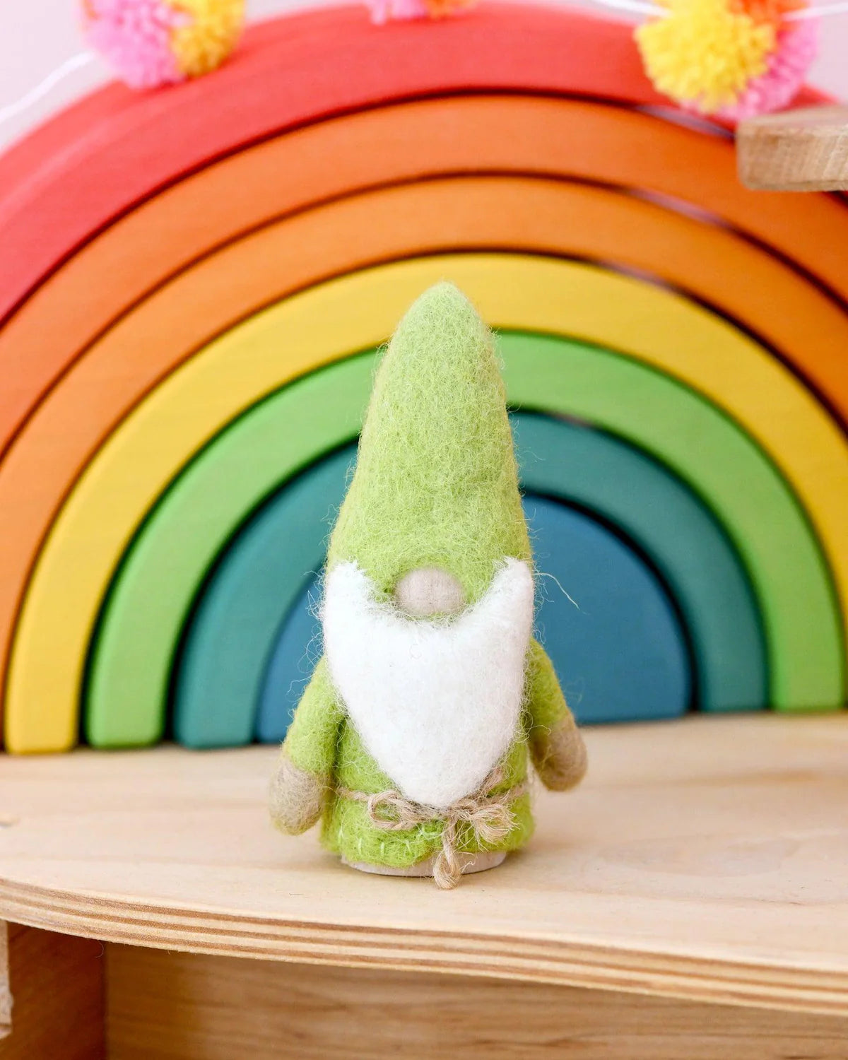 Crafted with exquisite attention to detail, this delightful Lime Green Felt Gnome Peg Doll with long fluffy beard adds a touch of charm and personality to any play space.