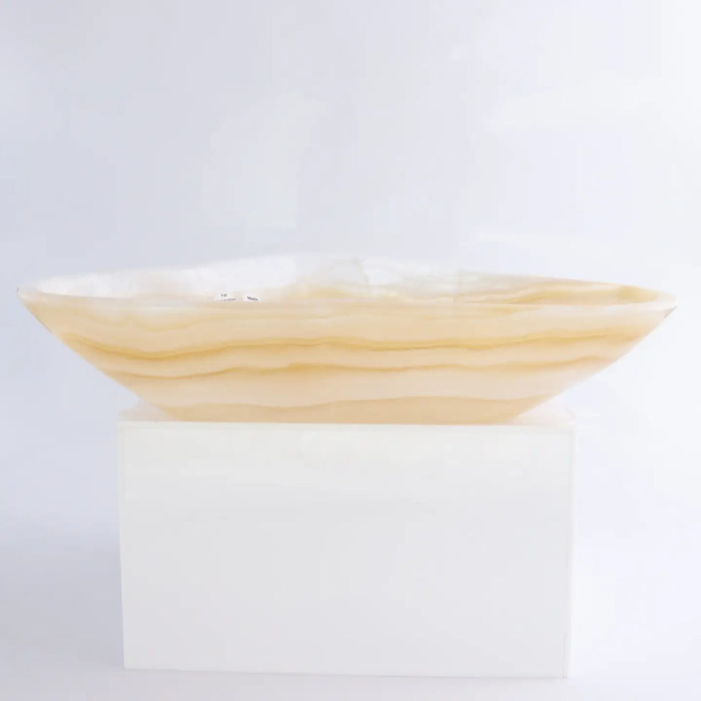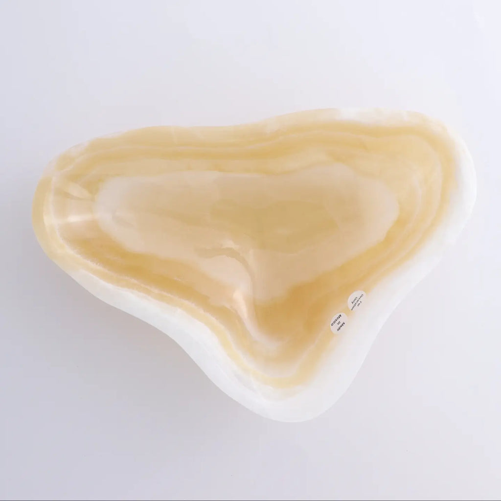 Crafted from solid onyx, this timeless bowl showcases the raw beauty of nature — soft veins, gentle translucence, and earthy hues that shift with the light. Each piece is completely unique, shaped by hand to highlight the stone’s natural variations and organic charm.